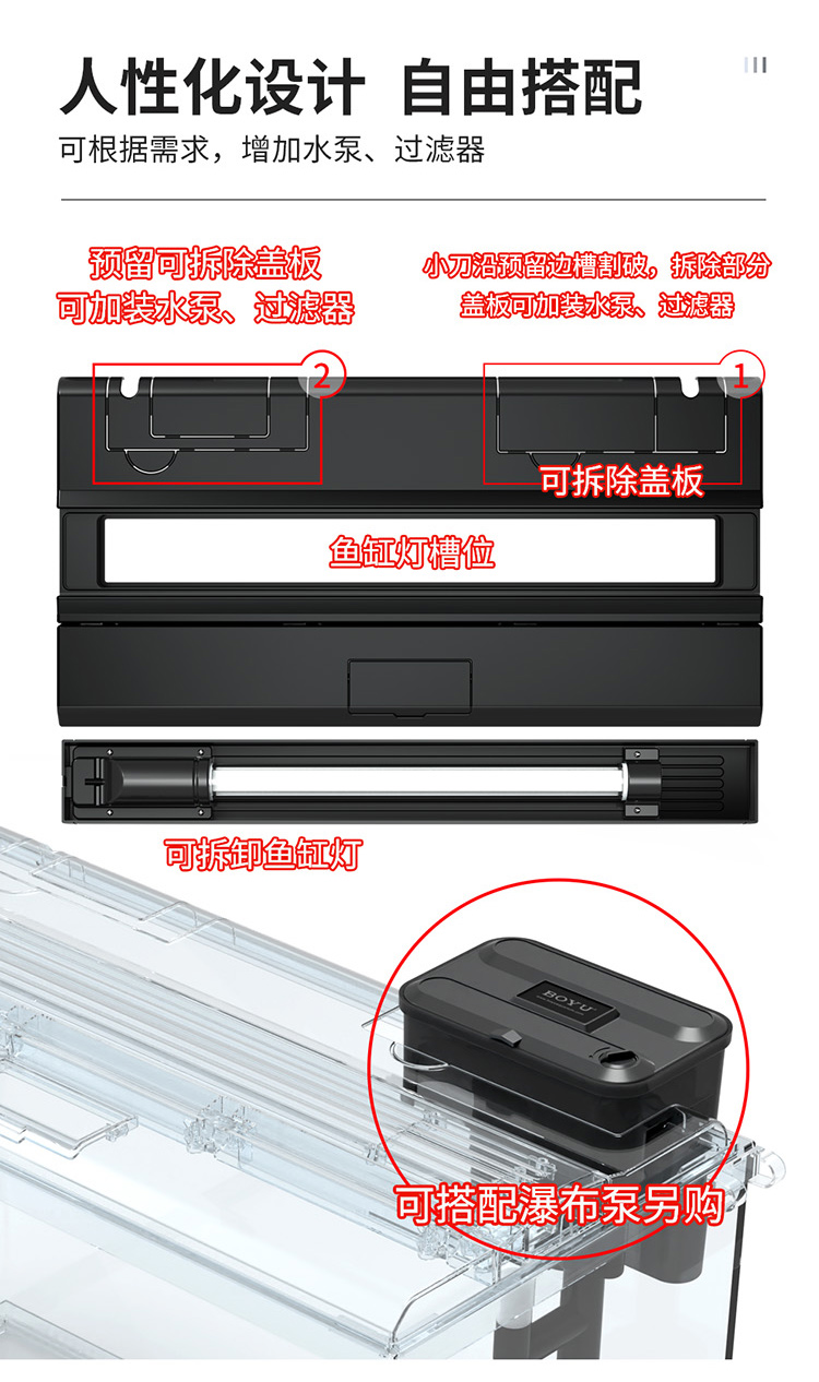可選配瀑布式過濾系統(tǒng);